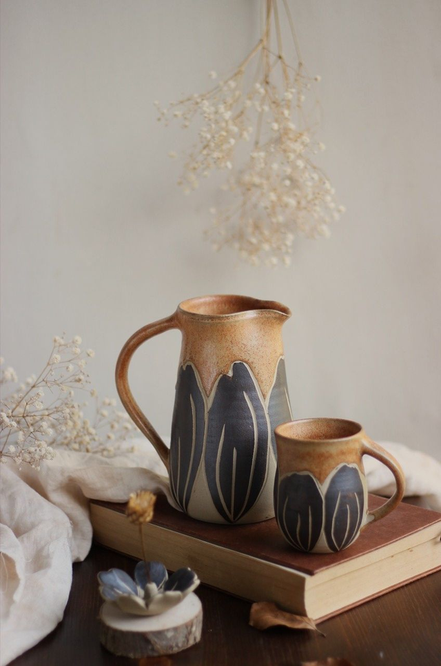 Pichet en grÚs artisanal, à intégrer dans votre vaisselle du quotidien pour servir une boisson chaude ou froide !