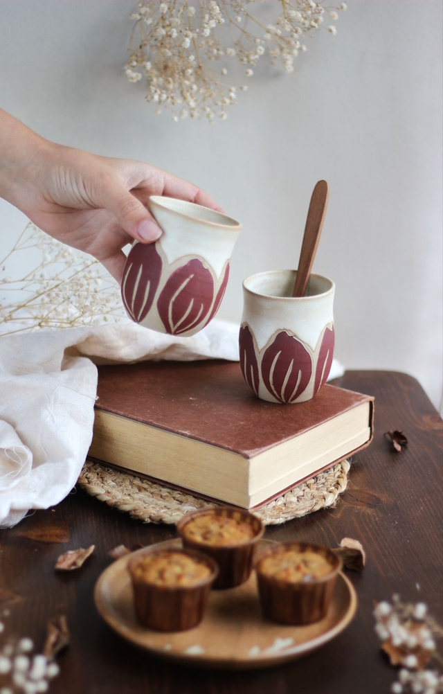 Tasse blanche 15cl "Tulipe rouge" sans anse