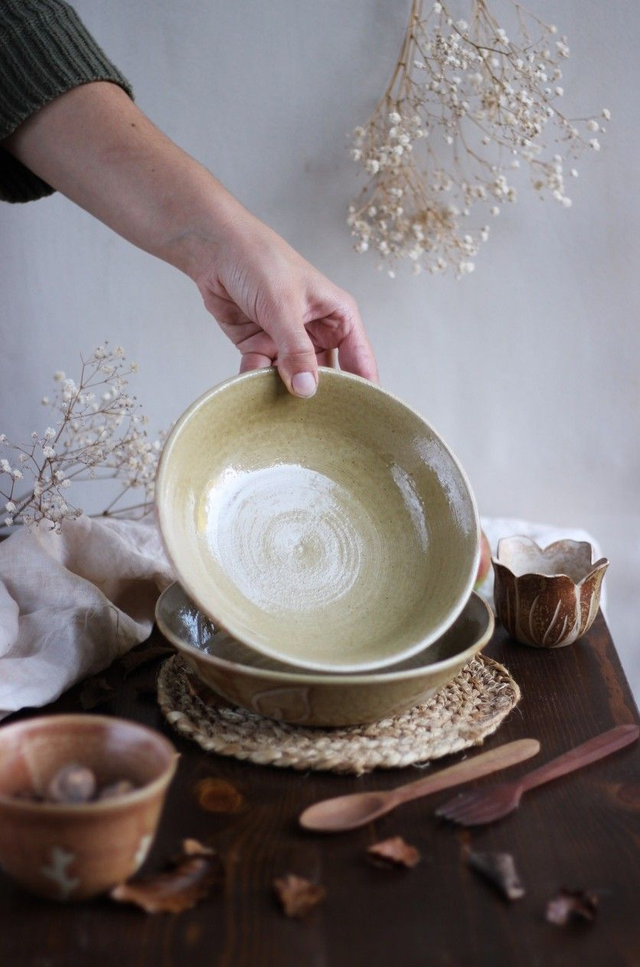 Assiette creuse artisanale en grès, pour les soupes, pâtes, salades...