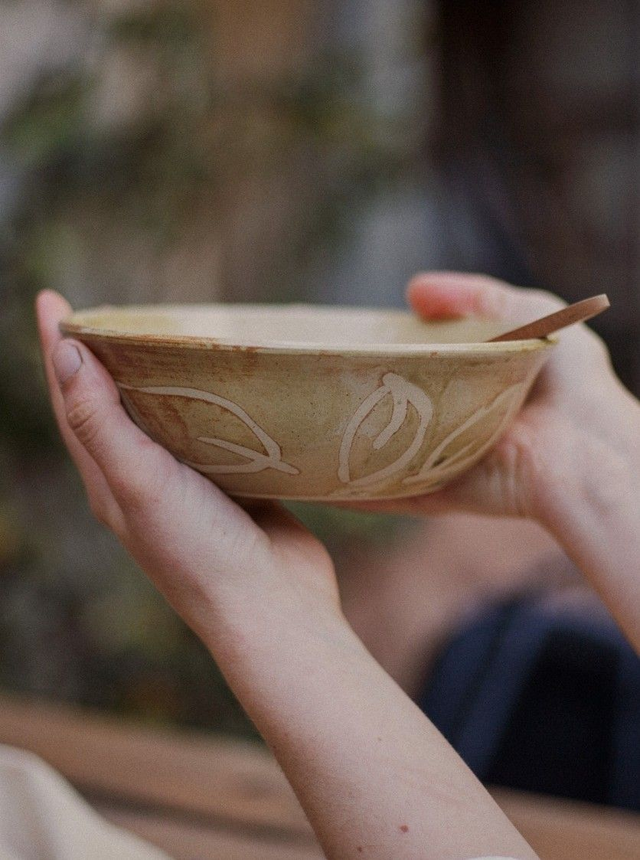 Les poteries sont toutes réalisées à la main dans mon atelier, du tournage, à l’émaillage en passant par les différents décors. C’est pourquoi il peut y avoir des différences d’aspects, de tailles, de couleurs et de formes.