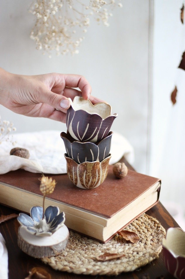 Les poteries sont toutes réalisées à la main dans mon atelier, du tournage, à l’émaillage en passant par les différents décors. C’est pourquoi il peut y avoir des différences d’aspects, de tailles, de couleurs et de formes.